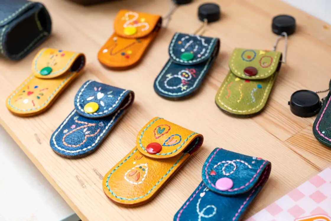 レザークラフトでは、講師の指導のもと、革を染めたり、手縫いを行い、沢山の商品を作り販売しています。(メゲネケース・カードケース・キーケース等)すべて手縫いで、やさしい味のある、1つだけの作品に仕上がっています。ご興味のある方は、是非1度お立ち寄り下さい。