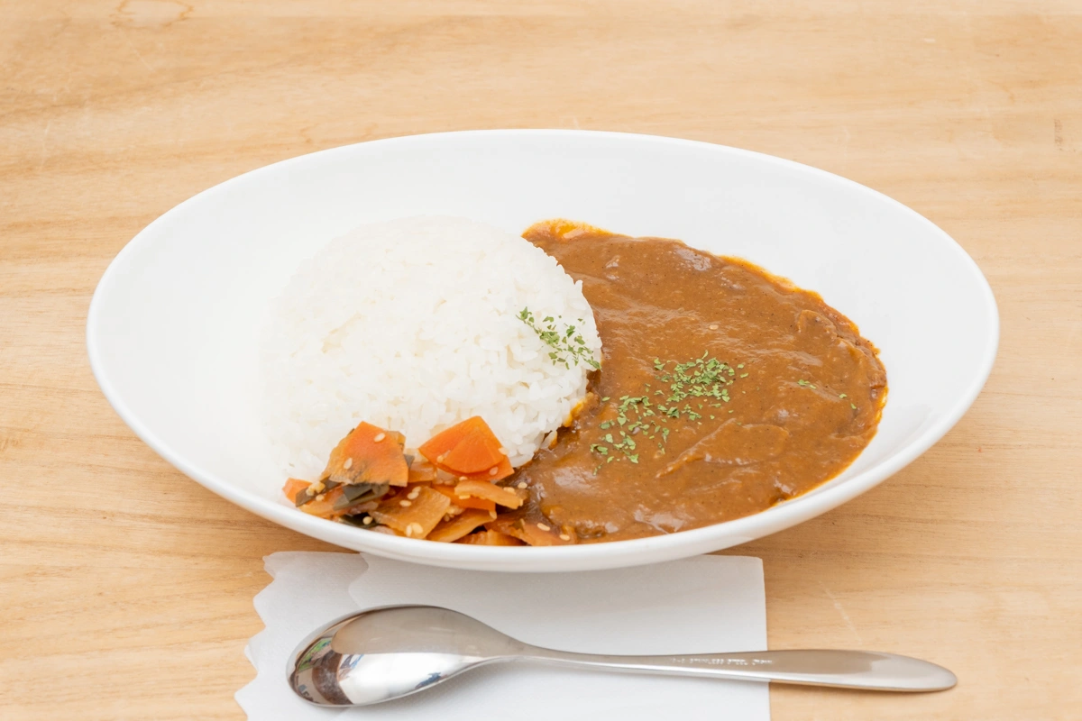 甘口カレーをいただきました。辛さはほんのりで食べやすいですね。付け合わせの福神漬けが良いアクセントでした。また行かせていただきます。