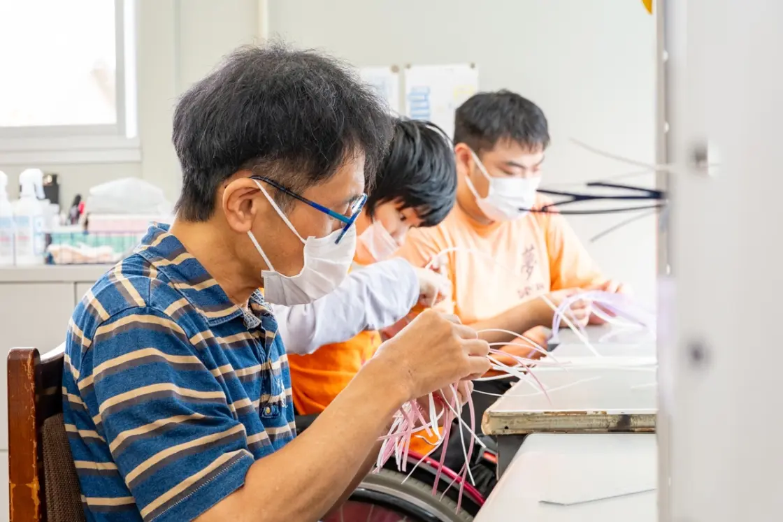 きずなの里では、みなさんの「はたらきたい」を実現するため、さまざまな活動を提供し、お一人お一人の要望に沿って支援していきます。だれもが笑顔になれる明るく元気な作業場です。