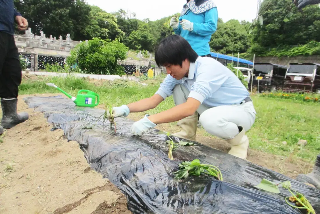 施設外の作業では、瀬戸の里の敷地にある畑にて、身体をしっかり動かしながら野菜を育てたり、収穫した野菜を袋詰めし、JA産直市に納品したりしています。また、花壇やプランターでお花を育てたり、イチジク、柑橘などの果物なども栽培しています。肌で四季の移ろいを感じながら仕事を頑張っています!